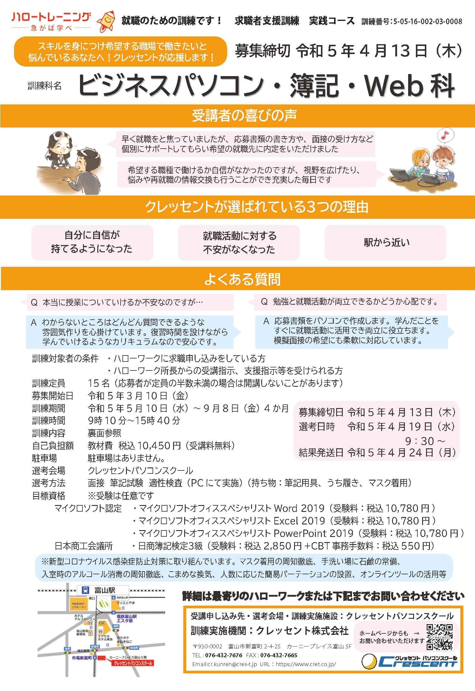 | 訓練実施機関 | クレッセント株式会社 富山市新富町2-4-25 カーニープレイス富山5階 |