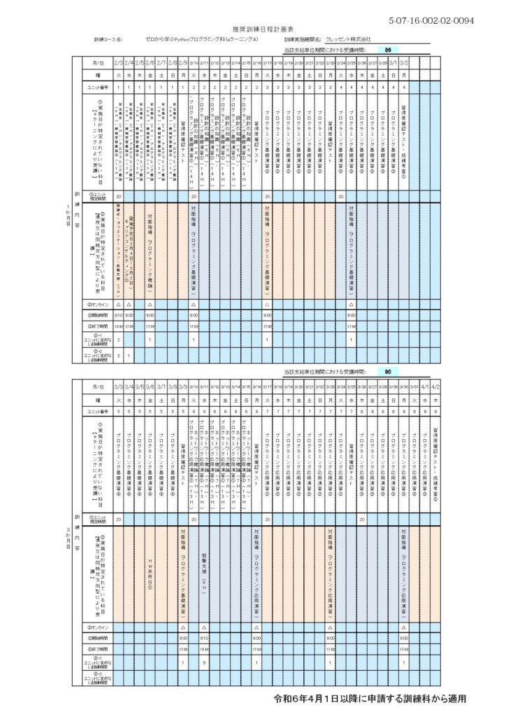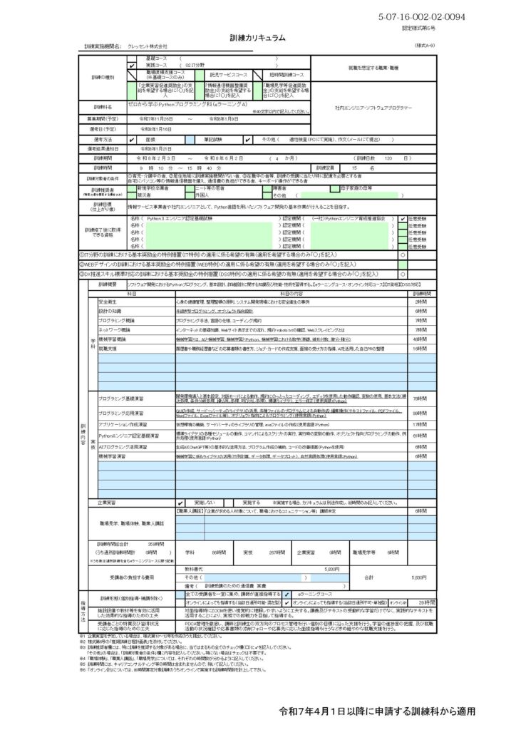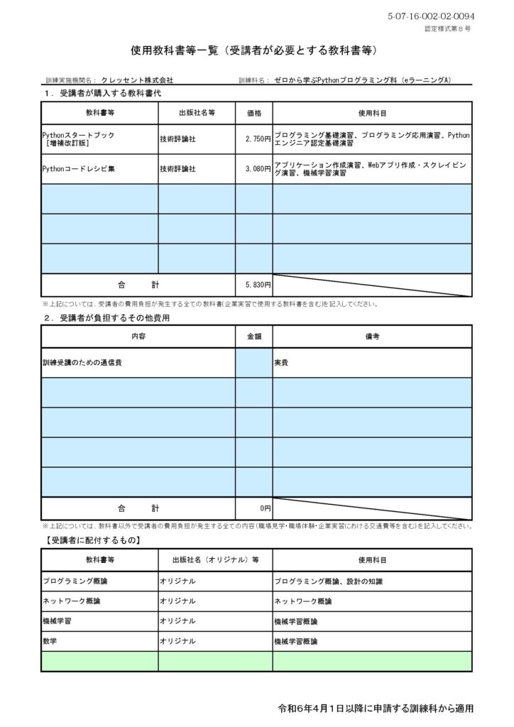 | 訓練科名 | ゼロから学ぶPythonプログラミング科(eラーニングA) |