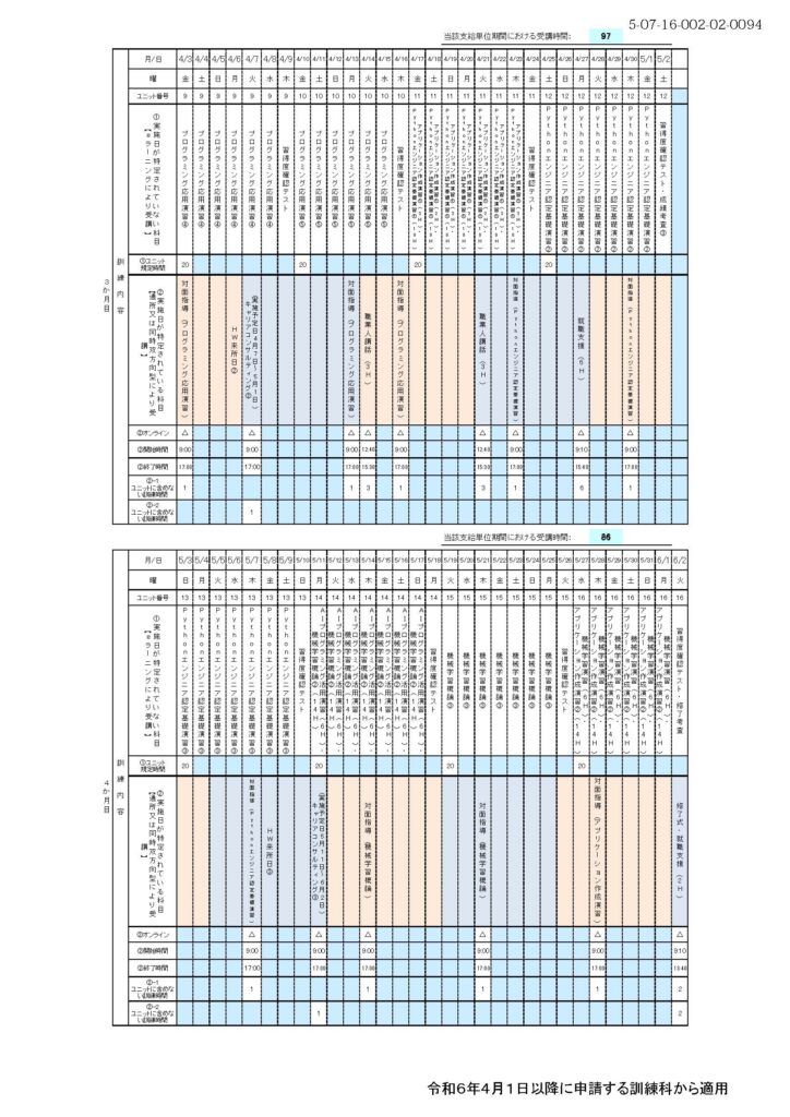 訓練カリキュラム・推奨訓練日程計画表・使用教科書等一覧